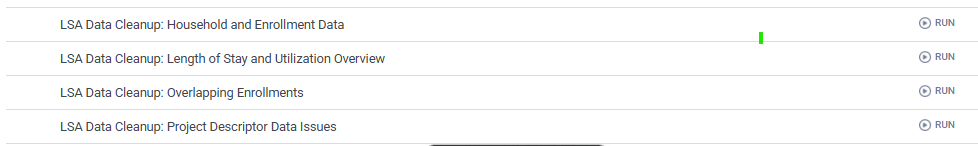 Two new LSA Data Cleanup Dashboards were created to assist with LSA preparation. It's recommended to run these dashboards on a regular basis to review your agency data quality.